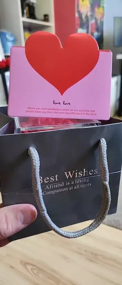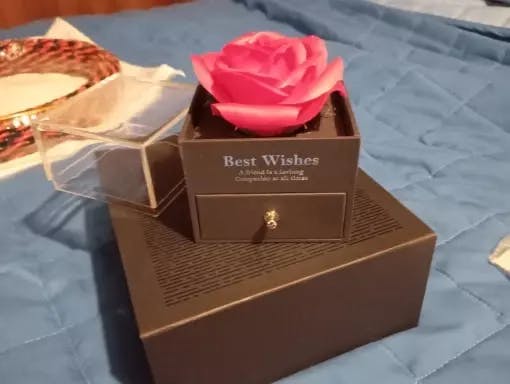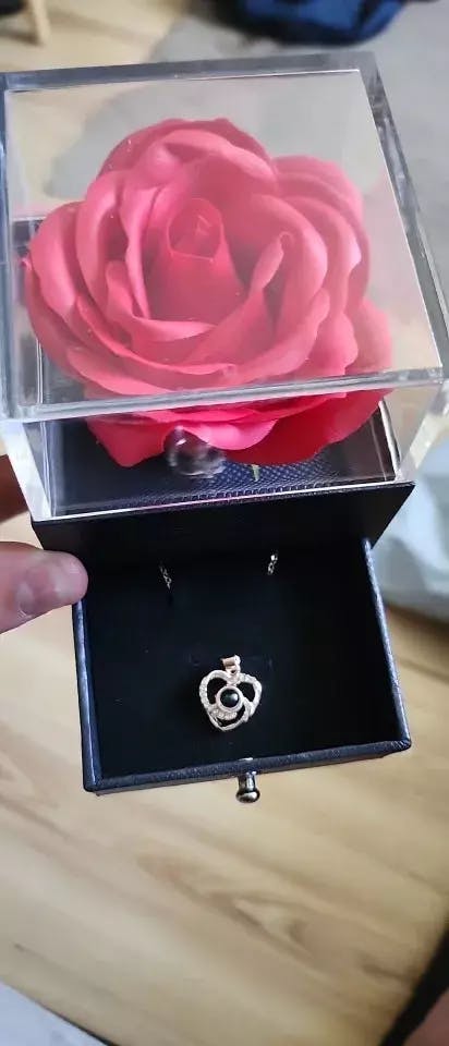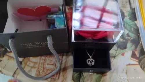 Imagina su rostro al abrir el regalo: una rosa que no se marchita, un collar que brilla con significado y una promesa que perdura.